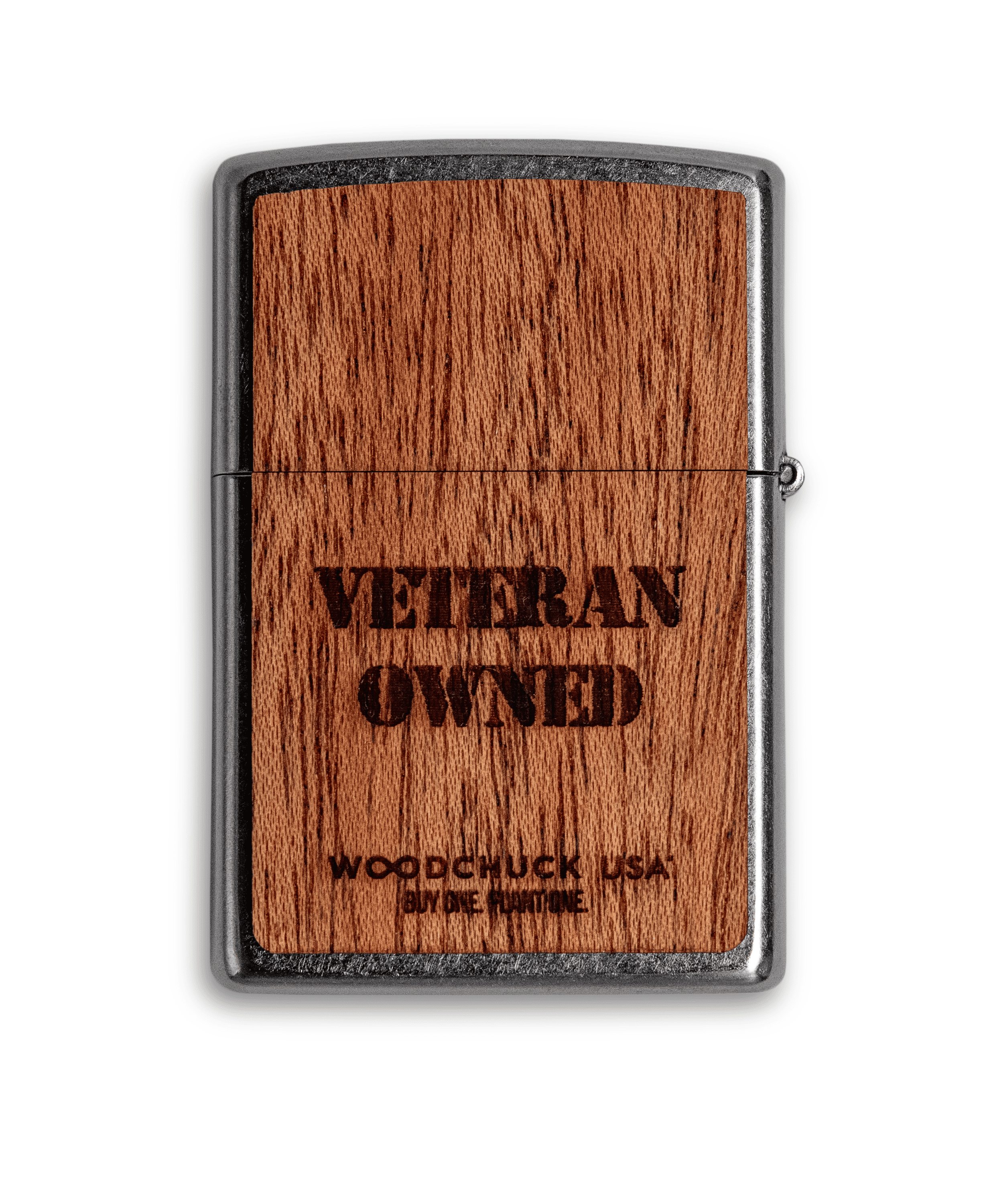 - Zippo lighter with butane insert with mahogany wood veneer