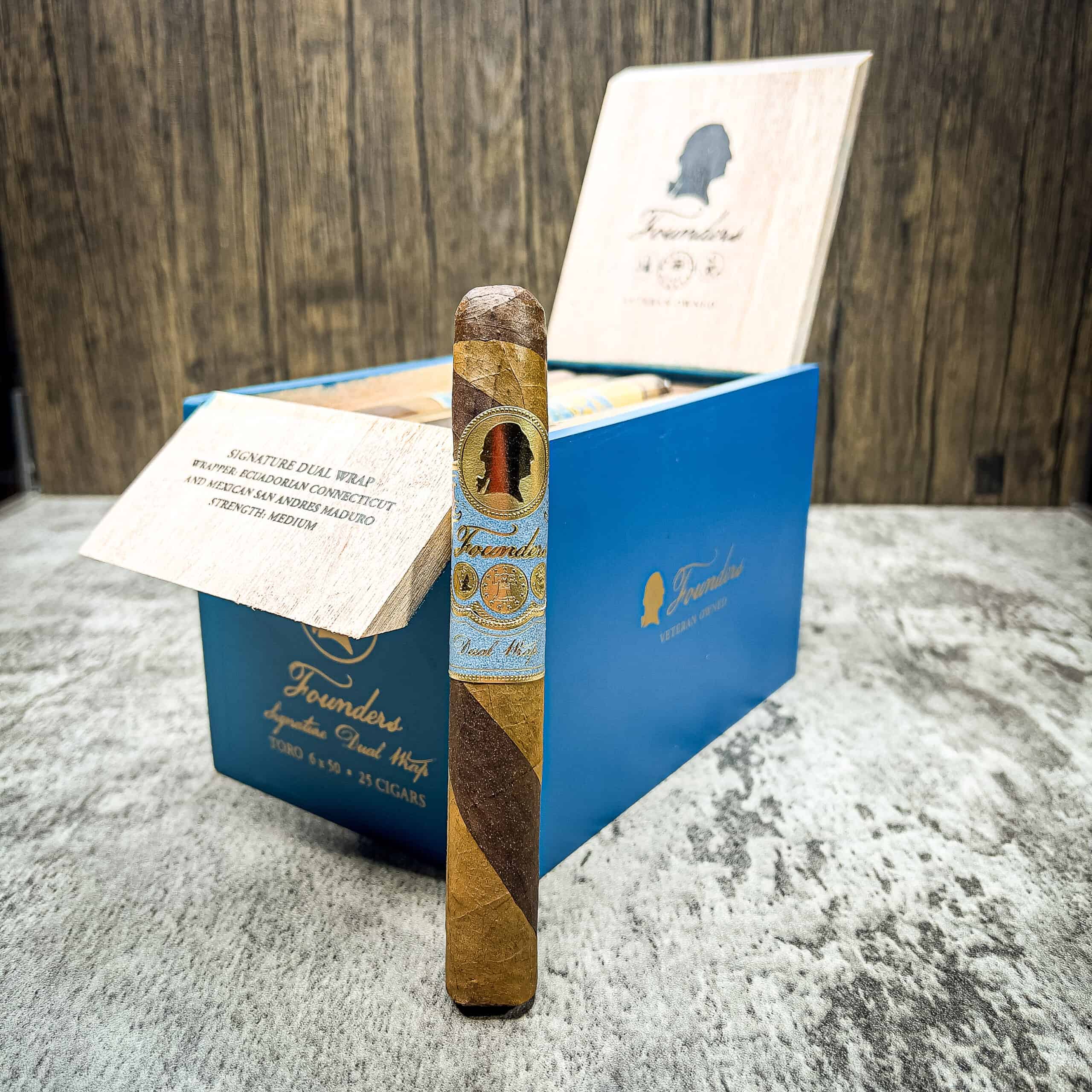 With each puff, experience the craftsmanship of veteran hands—hands that understand the value of tradition and the importance of innovation. The Signature Dual Wrap is more than a cigar; it’s a journey through flavors, a homage to the past, and a toast to freedom and virtue. Ideal for the aficionado who appreciates a cigar with a story as rich as its smoke, it stands as a pillar of what Founders Cigars represents: resilience, quality, and a deep-rooted respect for history.